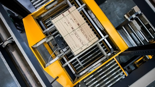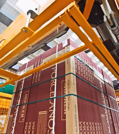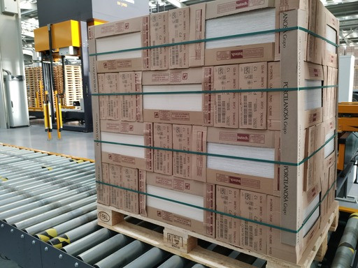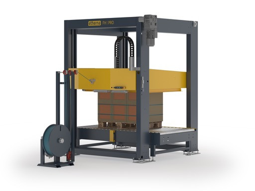 Le système automatique de cerclage horizontal permet de régler la position et le nombre de feuillards en fonction des différentes dimensions des palettes.