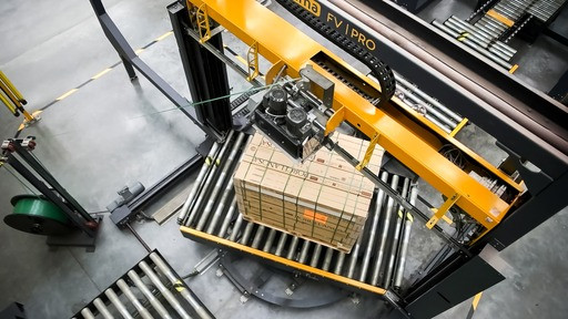 Le système de cerclage vertical automatique permet de cercler différentes dimensions de palettes, sur 2 ou 4 côtés du chargement.