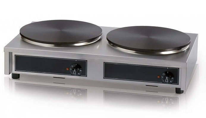 La crêpière électrique double gamme maintient une température stable, vous permettant de réaliser des crêpes à la série sans interruption.
