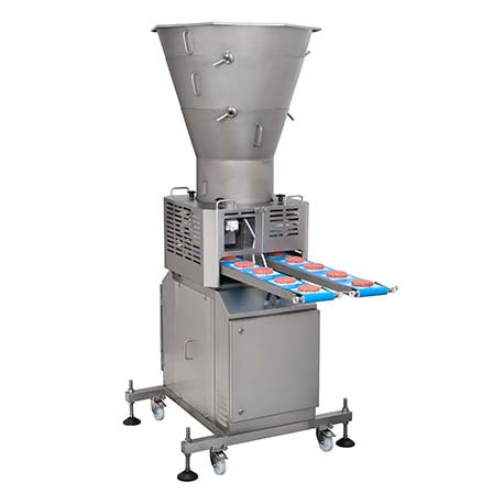 Son système de bras racleur permet une répartition précise de la viande dans le moule, assurant ainsi une uniformité parfaite de chaque produit.