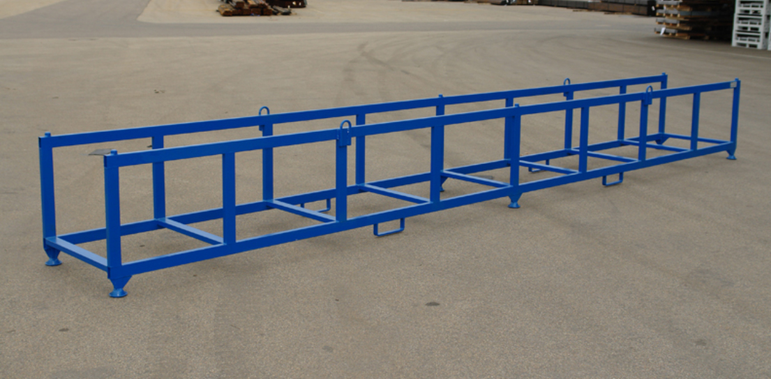 Besoin de 2 racks de ce type, longueur de 8m environ pour transport et levage de bacs zinc rangé à la verticale sur leur largeur dans ces racks.