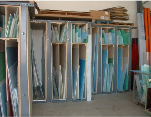 Afin de faciliter le stockage vertical, les échelles inclinées vont contribuer à l’appui régulier des panneaux sans déformation et les séparations pour le stockage de panneaux de différentes dimensions.