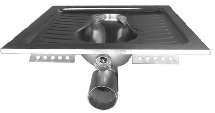 Ces WC à l'oriental sont d'une solide structure en acier inoxydable d'une épaisseur de 1,2 mm et d'une finition brossée.
