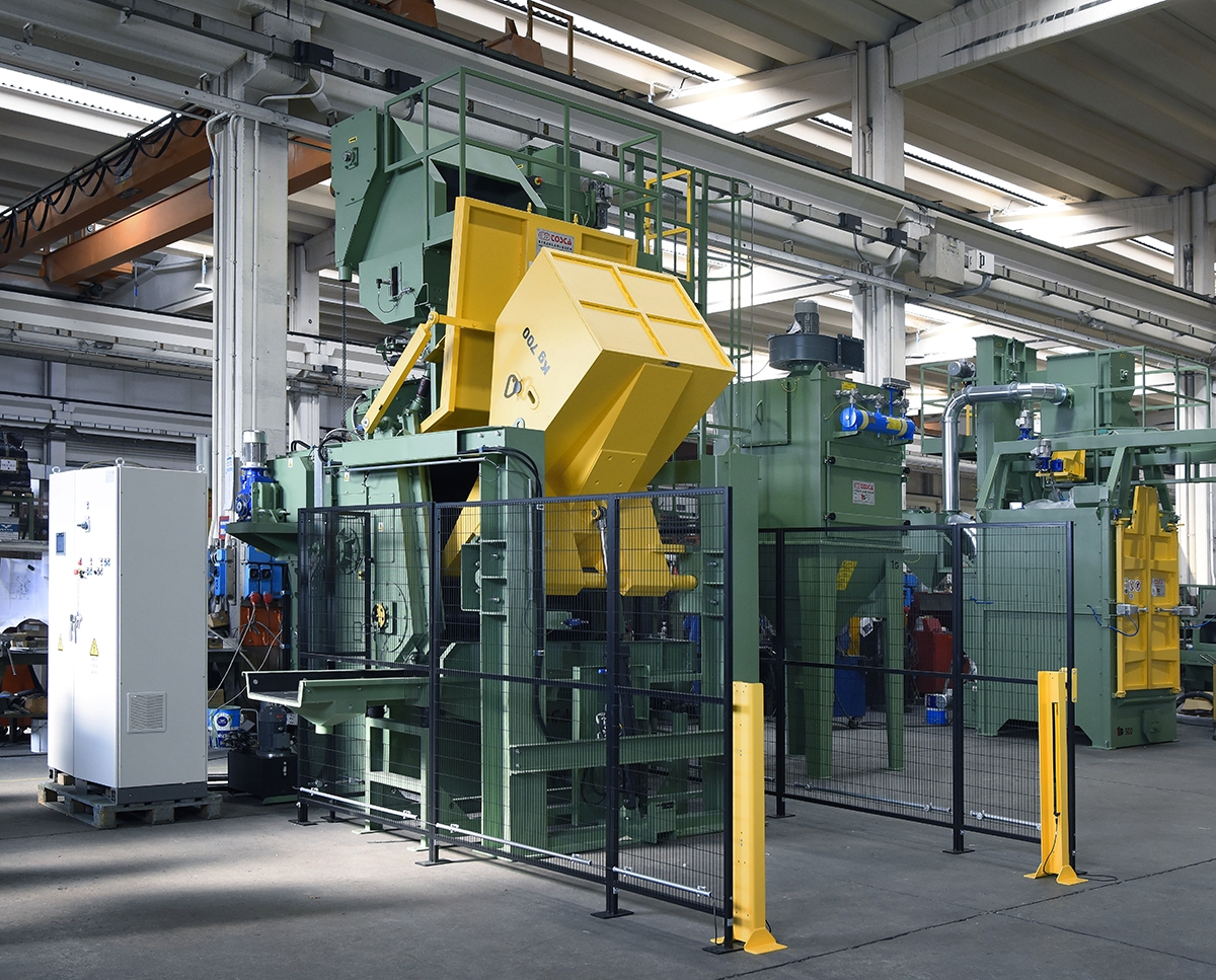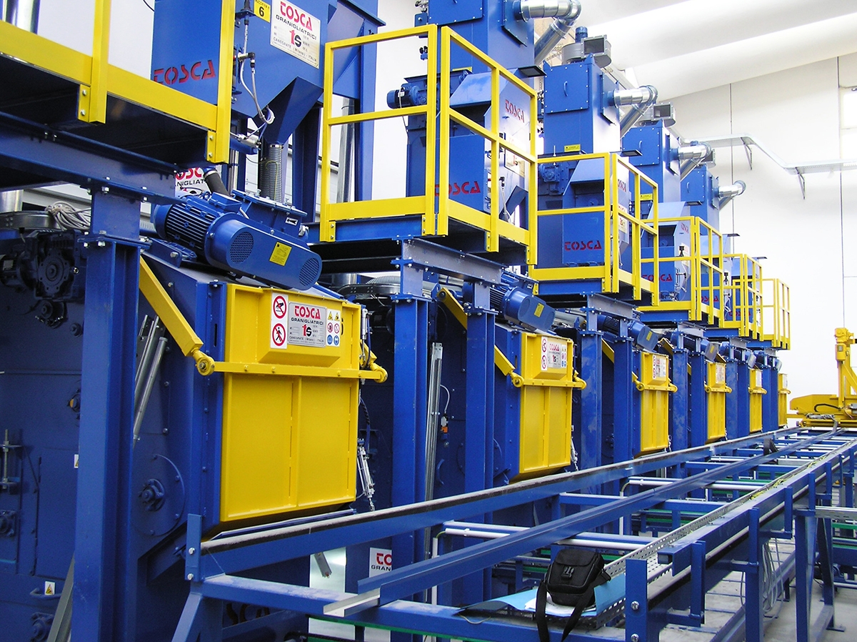 Elles sont caractérisées par un tablier transporteur sans fin en caoutchouc spécial anti-abrasif ou en plaques d'acier pour le brassage des pièces pendant le grenaillage.