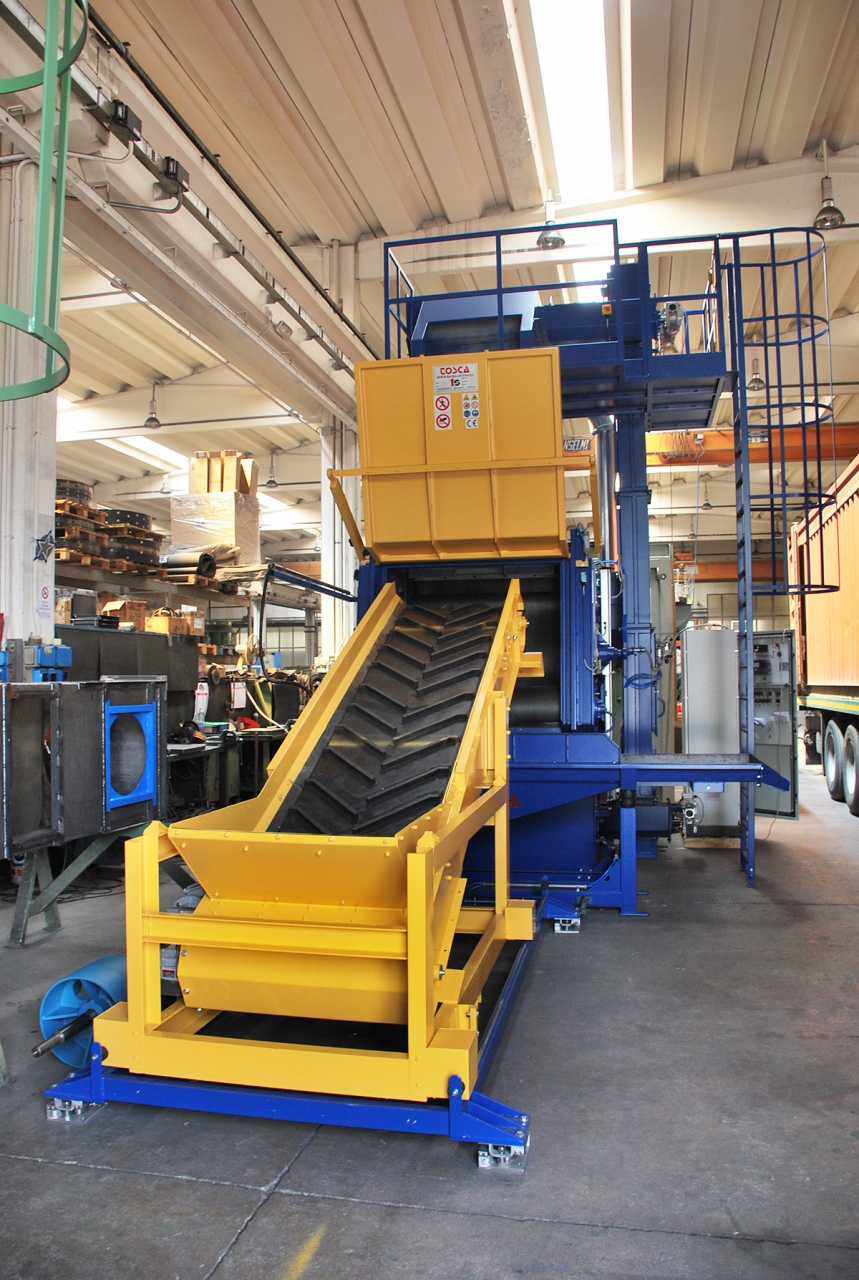 Le chargement, manuel sur les plus petits modèles, s'effectue automatiquement à l'aide d'une benne basculante à commande hydraulique.