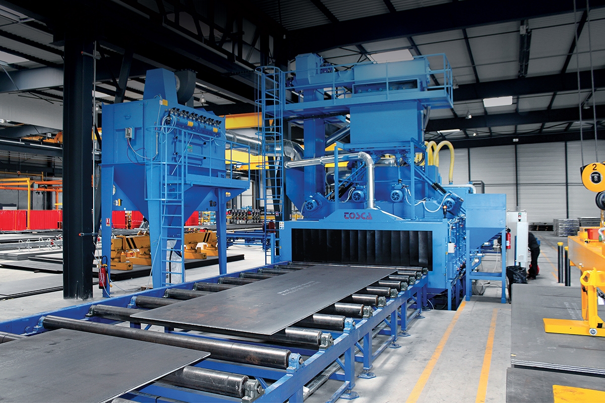 Le nettoyage superficiel de tôles, profilés et structures composées a été résolu de façon rationnelle grâce à l'utilisation de ces installations à tunnel continu.