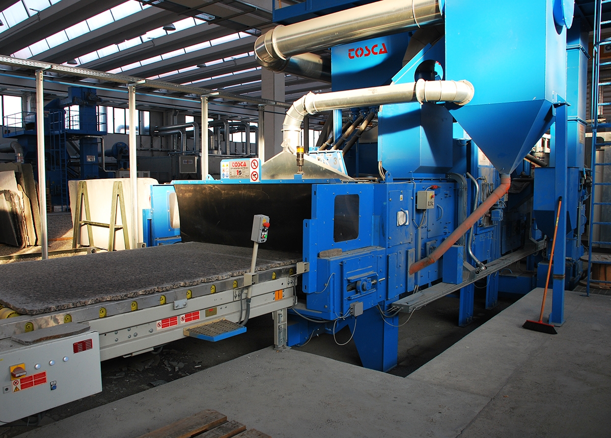 Rugosité, satinage, vieillissement de plaques de marbre naturel ou aggloméré, granit, pierre, mais aussi pavés et dalles béton, autobloquants, bordures, etc...