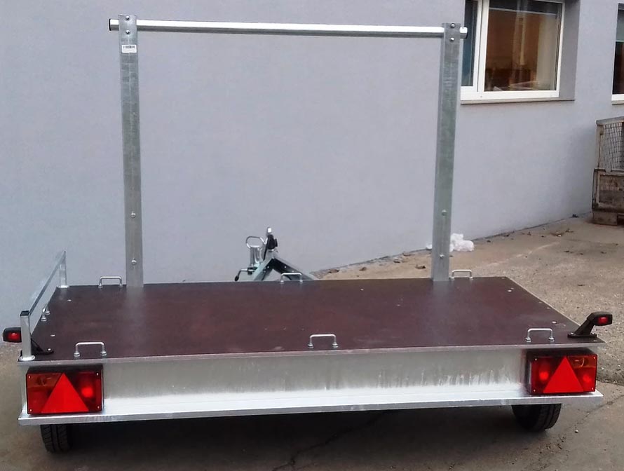 Remorque transversale nue, sans rampe ni arceau. Seulement avec le plateau.