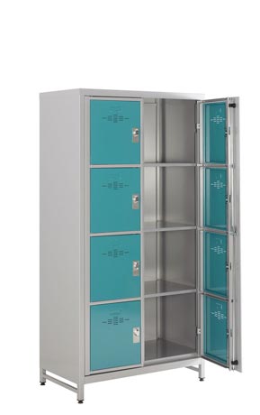 Pour garantir l’hygiène et faciliter le nettoyage, optez pour le modèle à façade visitable : la façade, en deux parties pour les casiers à deux colonnes, s’ouvre totalement et permet une inspection collective.