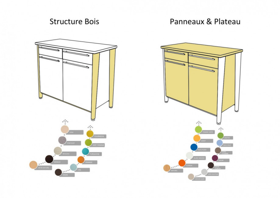 - Les portes et les facades sont réalisés en mélaminé de 19 mm avec montant massif .