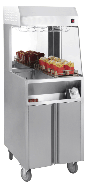 Le meuble est équipé de 3 ampoules chauffantes qui garderont au chaud vos frites, sans qu’elles ne perdent leur croustillant.