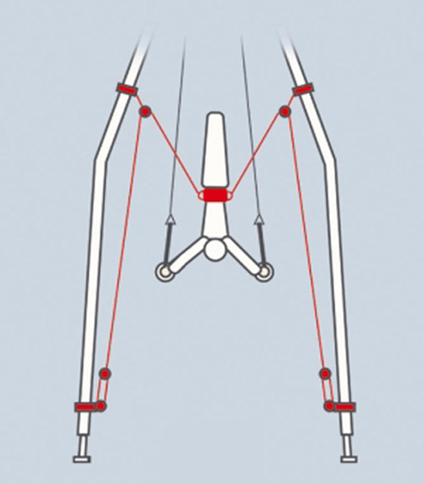 le réglage de cet anneau se fait en variant la longueur des élastiques afin d'alléger le poids du gymnaste et lui permettre de travailler les élément techniques.