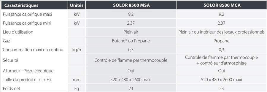 Le SOLOR 8500 MCA s'utilise en plein air comme à l'intérieur des locaux professionnels (hors ERP, bureaux, réfectoires et espaces domestiques).