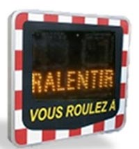 - Texte RALENTIR ou Symbole danger alterné avec vitesse excessive