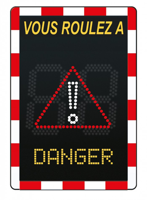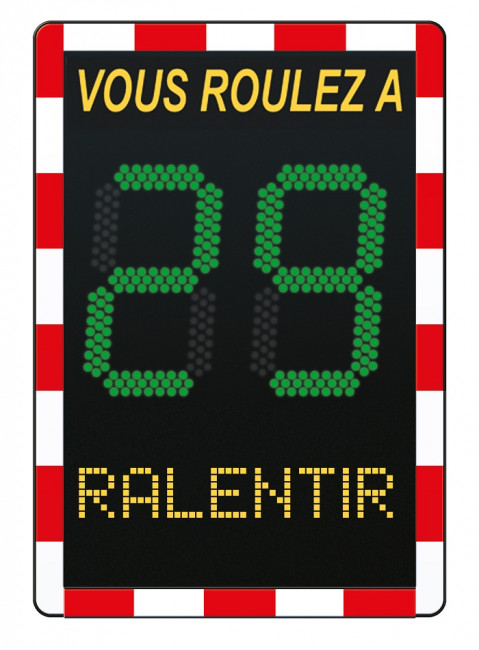 Les nouvelles LED multicolores du Radar Pédagogique Grand Écran permettent de personnaliser l'affichage en vert, jaune et rouge.