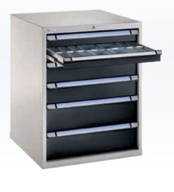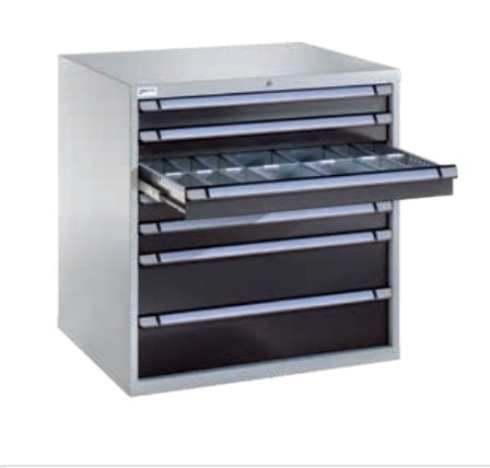 Cette armoire à tiroirs offre une solution de stockage solide et optimale pour toutes sortes de machrandises et moyens de production.