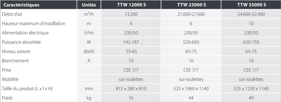 Demandes de devis pour Ventilateur industriel mobile et orientable TROTEC TTW - 13.200 m³/h à 24.600-32.400 m³/h - Hauteur d'installation : 4 à 10 m