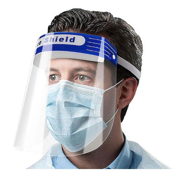 Visière de protection visage en polyéthylène permettant d'échanger en limitant le risque de projection de gouttelettes.