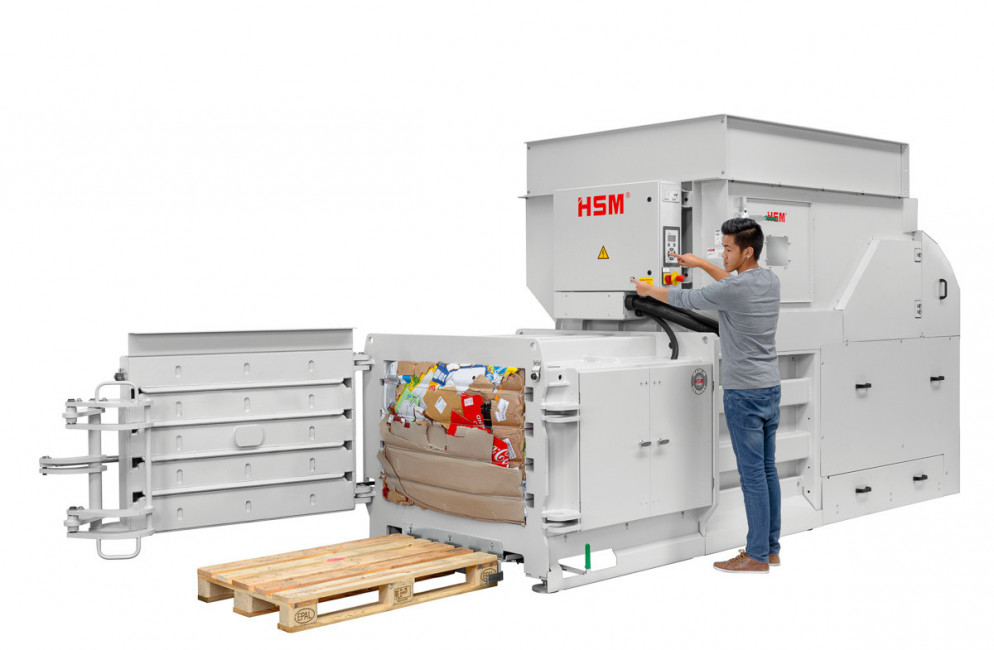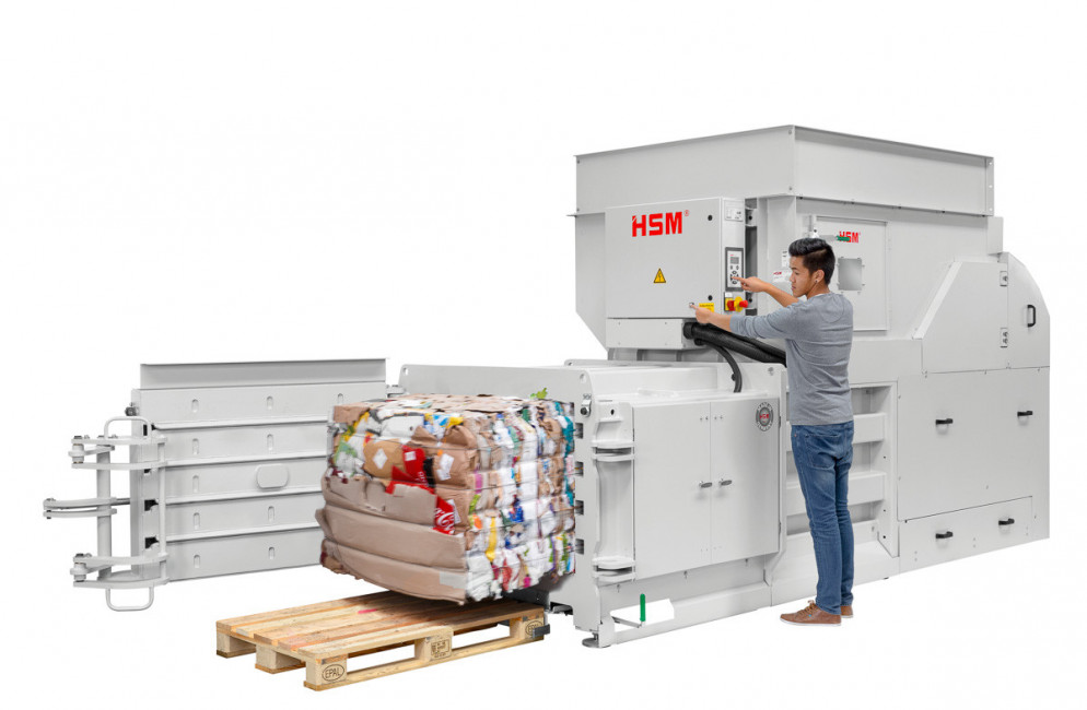 Cette pesse à balles horizontales à plaques opposées est destinée à la réalisation des tâches conséquentes de traitement des déchets.