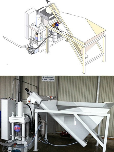 - Capacité à traiter entre 30 et 60 Kg/h de copeau d’aluminium et entre 60 et 80 Kg/h d’acier