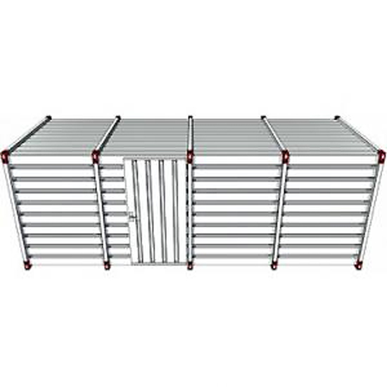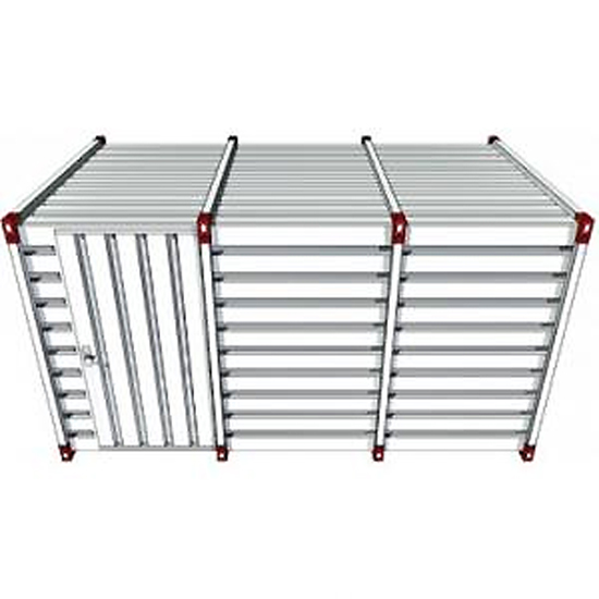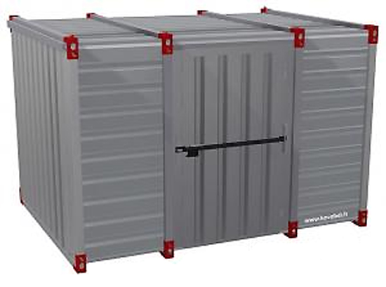 - Container fabriqué en tôles d’acier galvanisées de 0.75 mm - Cadre ceinture en acier plié galvanisé de 2 mm - Livré en standard avec une porte double battants comprenant poignée et serrure - Dimensions d'ouverture des portes battantes 1930 x 1930 mm - Sol standard en plancher bois rainuré d'épaisseur 35 mm