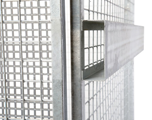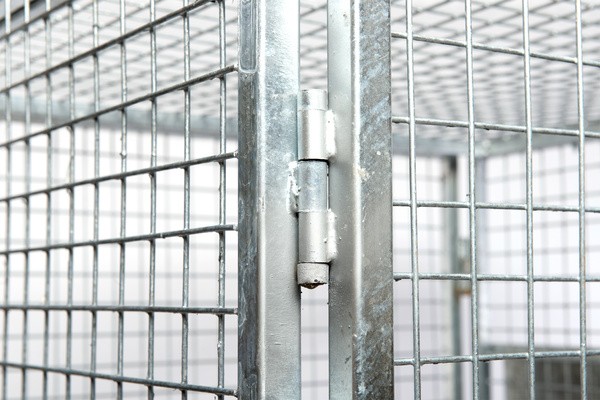 conteneur de stockage grillagé pour bonbonnes de gaz et équipements de chantier.