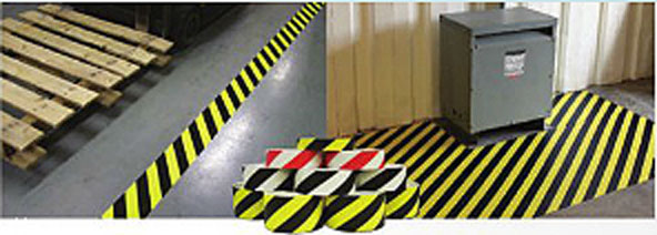 • Adhésif marquage au sol 150mmx30m – hachuré jaune & noir => 2 rouleaux