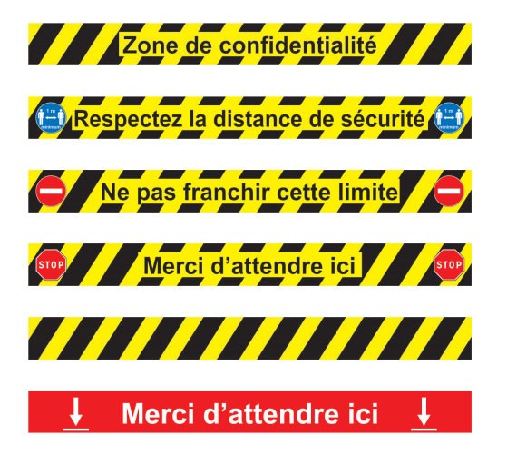 je souhaiterais avoir un devis pour 4 bandes adhésives antidérapante pour sol avec mention "respectez la distance de sécurité", ainsi que 4 signalétique adhésives rondes pour sol avec mention "Stop je garde mes distances". Merci de me faire parvenir vos propositions.