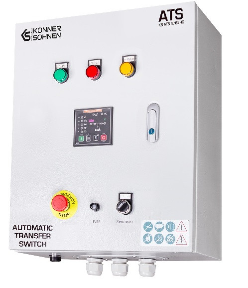 Le modèle KS ATS /63HD est spécifiquement conçu pour être compatible avec tous les groupes électrogènes diesel de la marque Könner & Söhnen portant l'abréviation ATSR dans le nom du modèle.