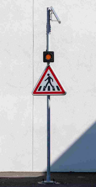 Son optique LED de 100 mm offre une luminosité maximale, assurant un panneau clignotant passage piéton visible de loin, même par mauvais temps ou en pleine journée. Vous bénéficiez ainsi d’un panneau piéton lumineux clignotant qui attire l’attention instantanément.