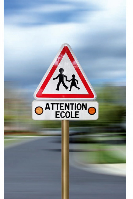 Ce panneau lumineux avec radar pédagogique permet de signaler la présence d'une école à proximité.