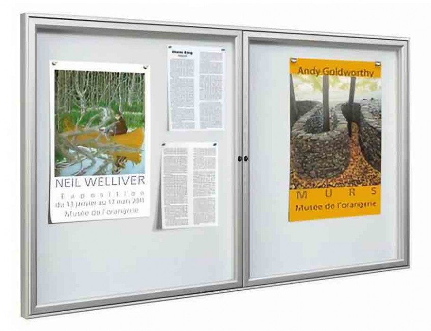 Cette vitrine d'affichage double battant peu encombrante est fixé sur un mur ou sur 2 pieds 5 branches (en option).