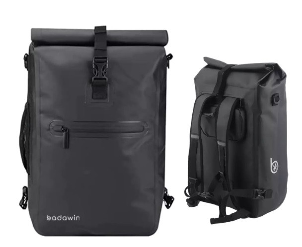 Sac à dos étanche pouvant être attaché au porte-bagages arrière.