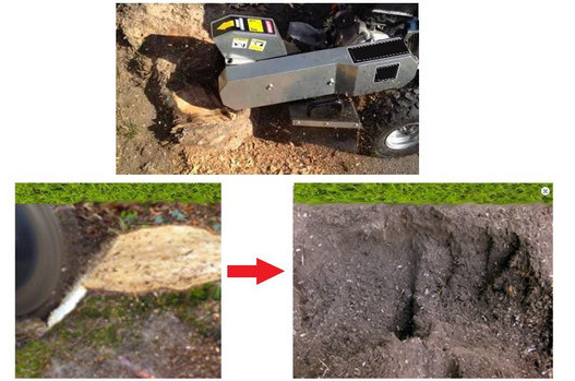- Peut rogner les souches et les racines à 515 mm au-dessus du niveau du sol et à 225 mm en dessous du niveau du sol