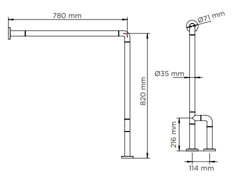 | Réf. TC :847969411 | Barre d'appui aluminium angle droit sol et mur | Aluminium | Nylon blanc | 35 | 820 x 114 x 780 | 2,6 | Aluminium | -