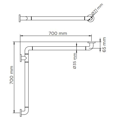 | Réf. TC :622457436 | Barre d'appui angle 2 murs | Aluminium | Nylon blanc | Ø 35 | 71 x 700 x 700 | 2 | -