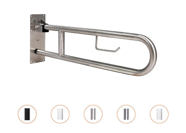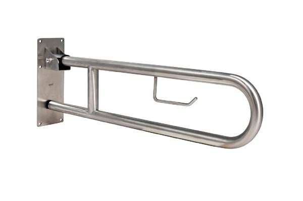 Cette d'appui relevable en inox apporte de la sécurité et du soutien aux personnes à mobilité réduite.