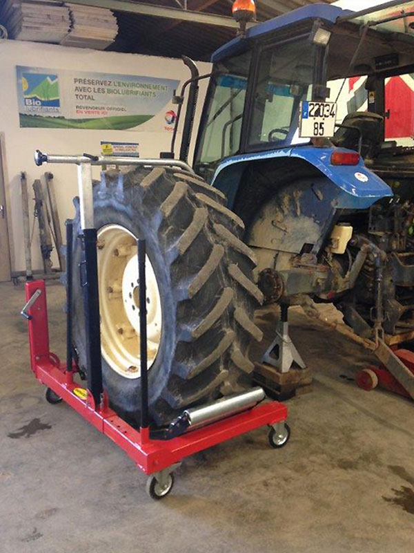 Nous vous recommandons notre transporteur de roues, un chariot manipulateur robuste et pratique pour la manutention de roues agraires ou de véhicules de chantier.