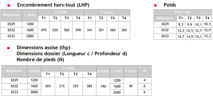 H x P x Pr Assise) en mm :