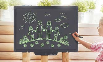 Ce tableau d'écriture est utilisable au doigt ou au stylet, sans craie ni encre, pour une écriture sans poussière et propre.