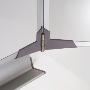 - Charnières de sécurité en Zamak réglables en dureté pour maintien des volets ouverts, fermés ou orientés vers une partie de l’auditoire.