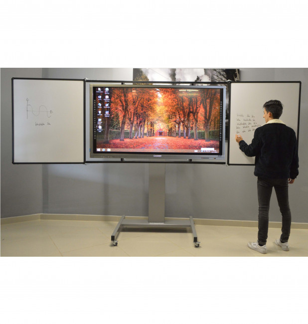 Ce modèle propose deux tableaux blancs pivotants à 90 ° avec quatre faces d'écriture émaillées pour passer facilement de l'écriture manuelle à la prise de note sur l'écran interactif.