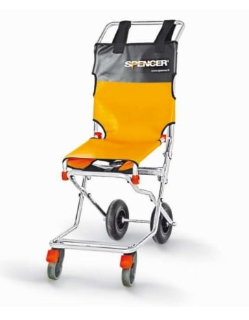 Cette chaise de transport compacte est conçue pour l'évacuation et le transport du patient du lieu de secours à l'ambulance.
