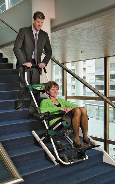 fauteuil roulant destinée aux personnes fragiles ou à mobilité réduite pour l'évacuation lors d'une catastrophe telle que :