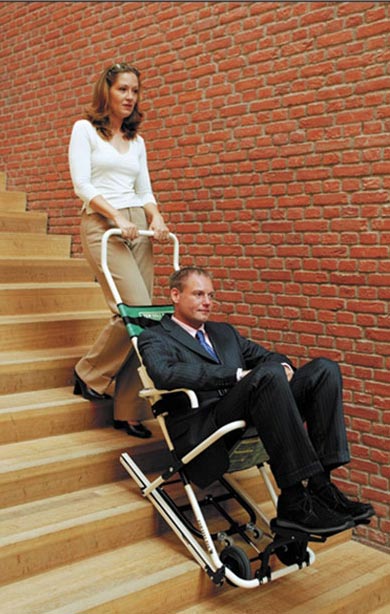 fauteuil roulant manuel peut recevoir une seule personne, et s'adapte avec tous les types d'escaliers.