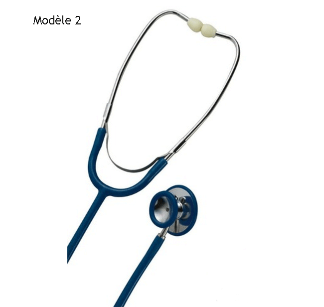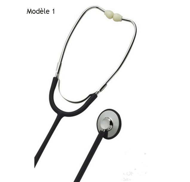Fabriqué en France, il est équipé de deux branches en acier avec deux embouts fixés en extrémité pour écouter les bruits en provenance des organes humains.