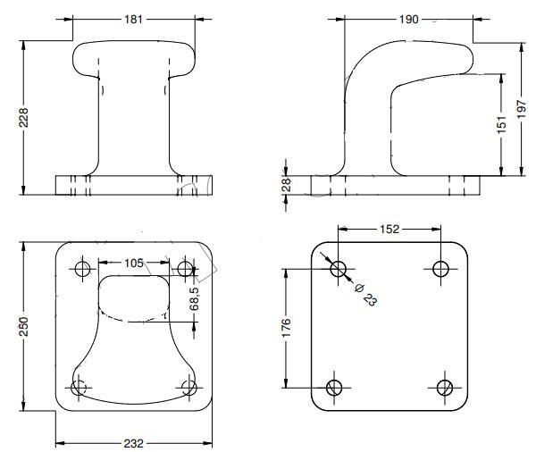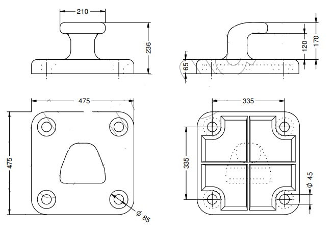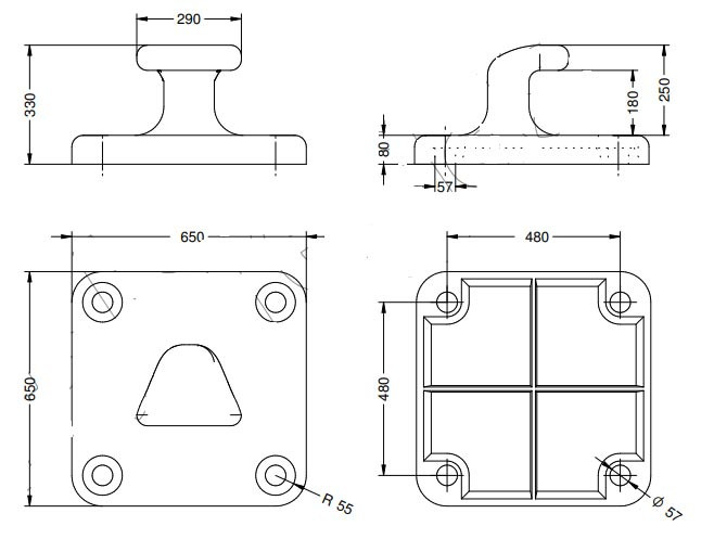 Borne d"amarrage en fonte 260x206x165 6T ref 541731143 quantité 4.