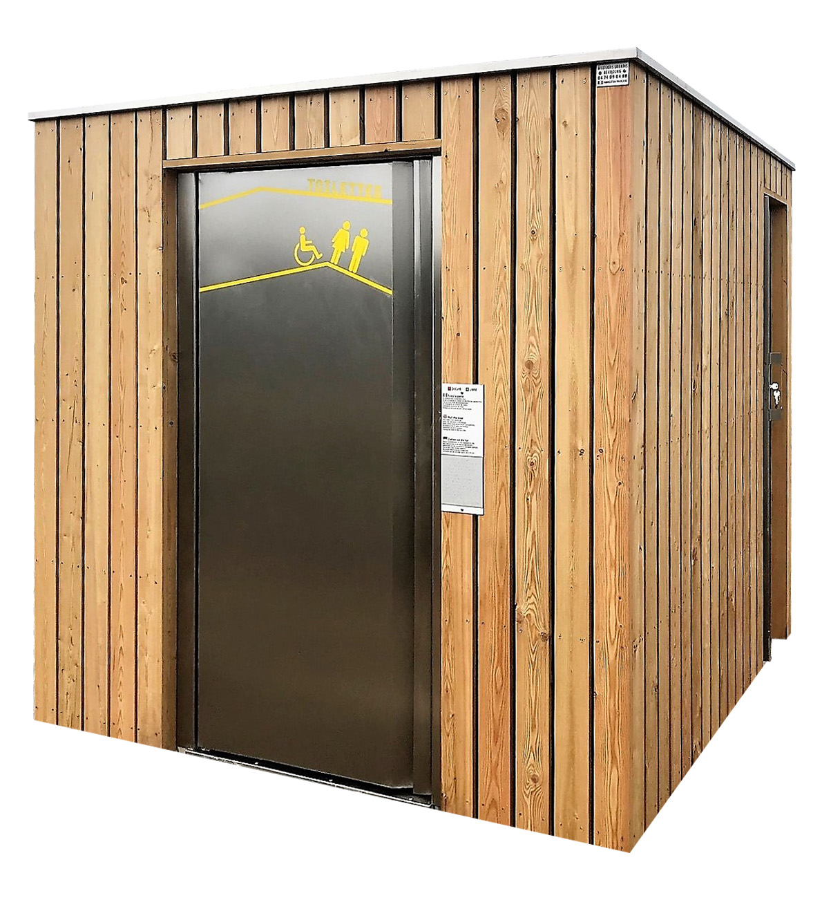 Besoin d"un devis pour toilette publique automatiqueaccès PMR, nettoyage automatique,chasse d"eau automatique, extérieur bardage bois, revetement anti grafitti si possible, 2.5mx2.25m.