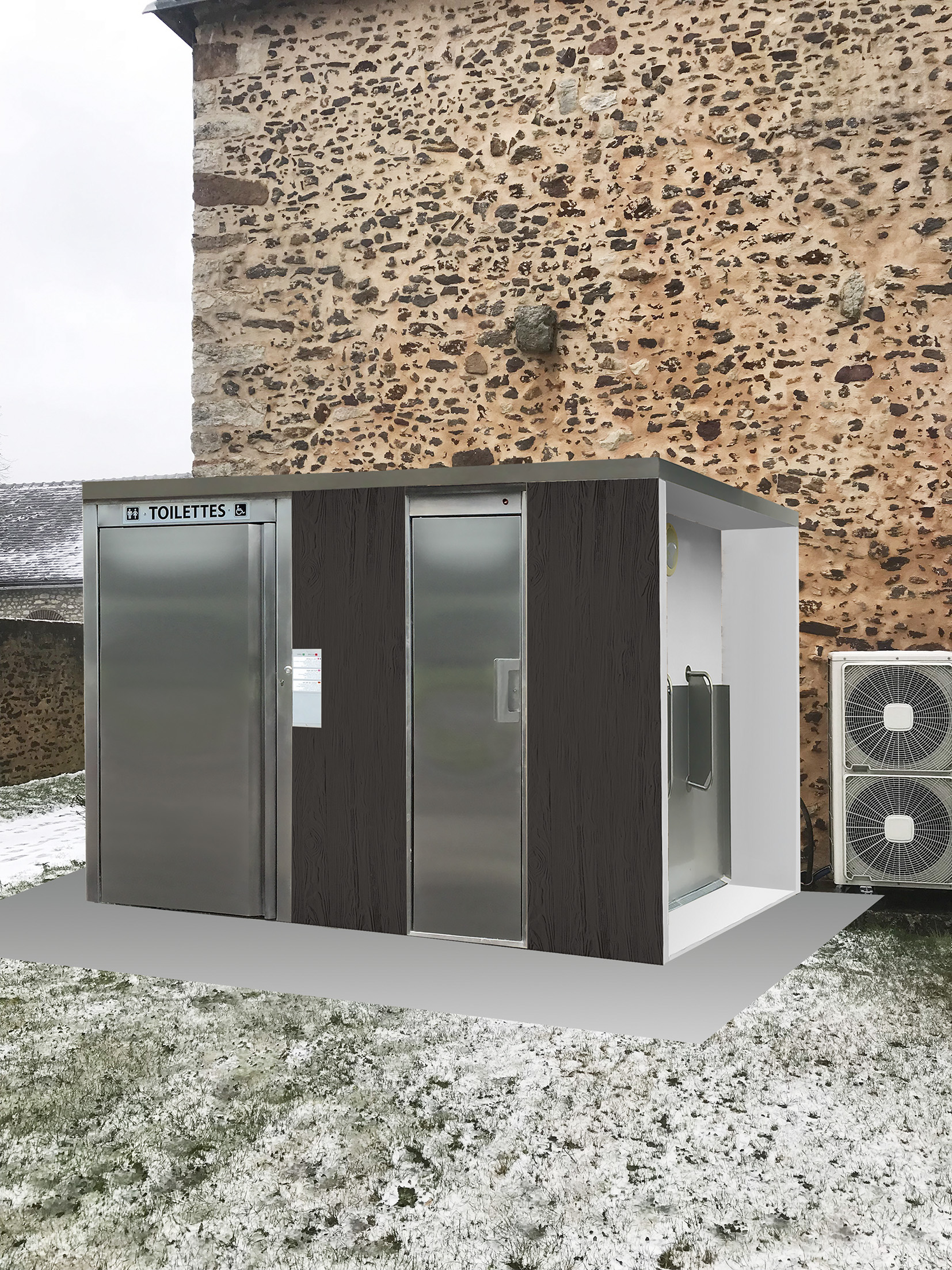 Toilette public avec 2 urinoires et 1 toilette PMR. PRIX ET MODELES pour la mairie. Cordialement.