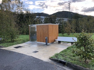 Cabine sanitaire automatique PMR accessible.